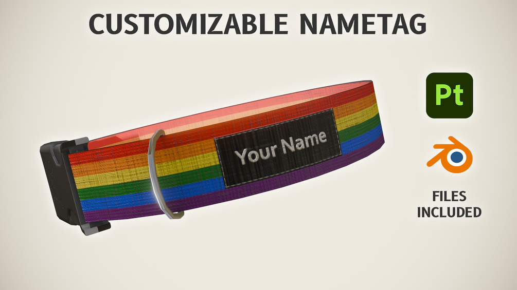 - Customizable textures with Substance Painter (you can change the text on the tag and the logo on the buckle).